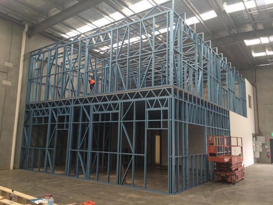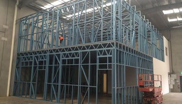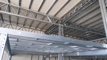 Estruturas em aço leve para telhados, mezzaninos, escritórios e até banheiros entregues 100% prontos pra sua indústria.