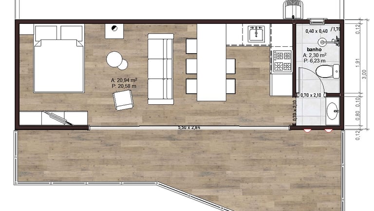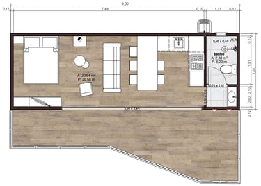 Planta modular 9,15x3,15m